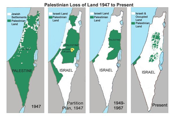 A united Arab Liberation Army of all Arab countries attacked the newly declared state of Israel on 15 th may 1948 itself i.e. the very first day of new Jewish state. Arabs army lost badly . It led to migration of 700000 Palestine people from Israel controlled area. Arabs again attacked in 1967 six days war .Victorious Israel occupied west bank , Gaza strip, Golan heights, Sinai penisula of Palestine / Syrian / Egypt. Israel now had 77% of total land. Arabs again attacked in 1973 and lost badly.