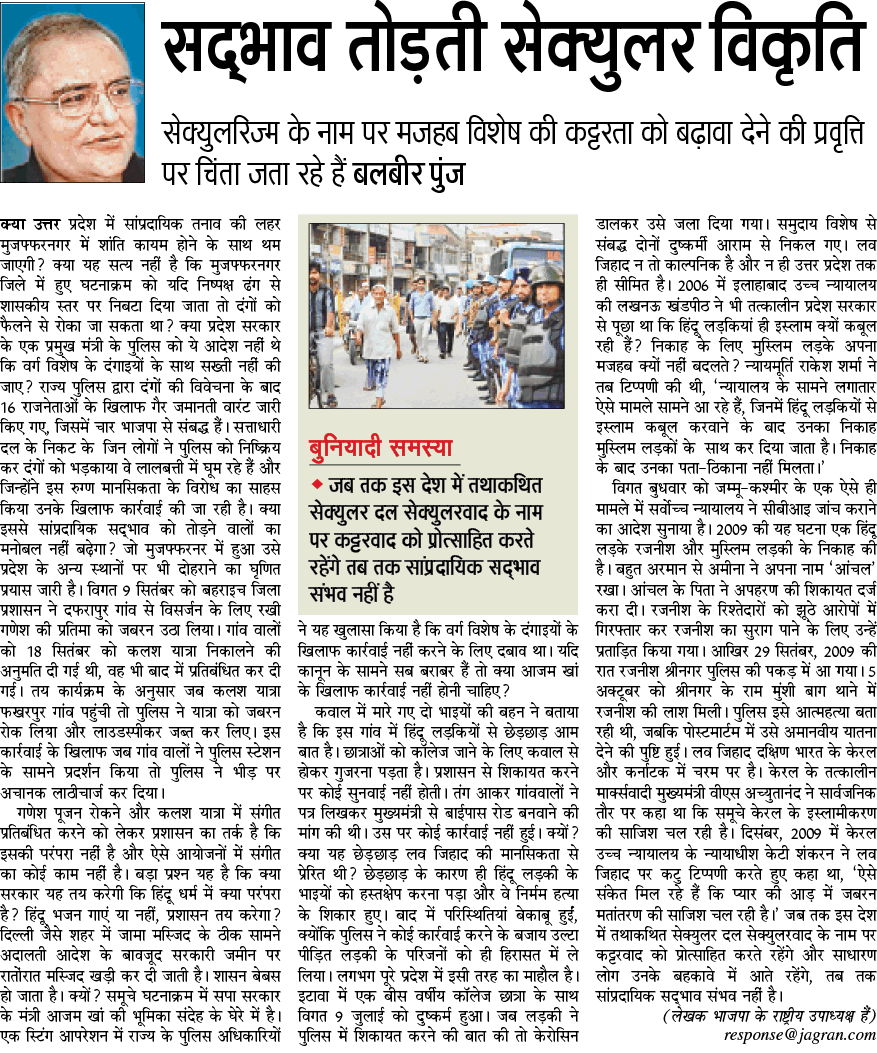 सद्भावना तोडती सेक्युलर विकृती – बलबीर पुंज